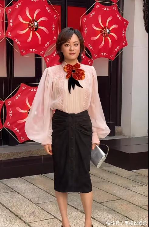 何超莲这边呢,说实话也有点一言难尽。她穿了一条红色短裙,脚踩白色高跟鞋,手里还拿个金黄色手拿包。这身打扮,说好听点叫复古,说不好听点就是有点土气,跟十几年前的审美似的。