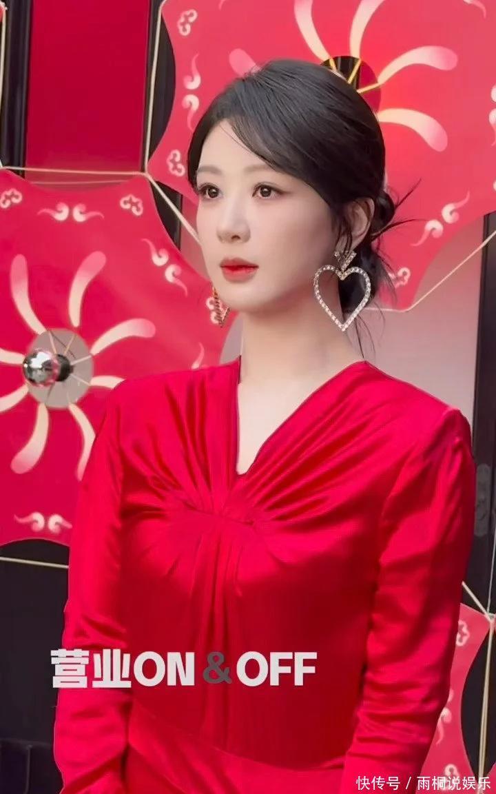 低盘发髻搭配超大钻石爱心耳环,裙摆在光影中翩然翻飞,笑容明媚如春阳,被粉丝盛赞“华伦公主驾到”。杨紫在群访中即兴送上祝福:“祝大家马到成功,红红火火!”工作室与品牌方同步强化“大红大紫”的吉祥寓意,将节日氛围拉满。
