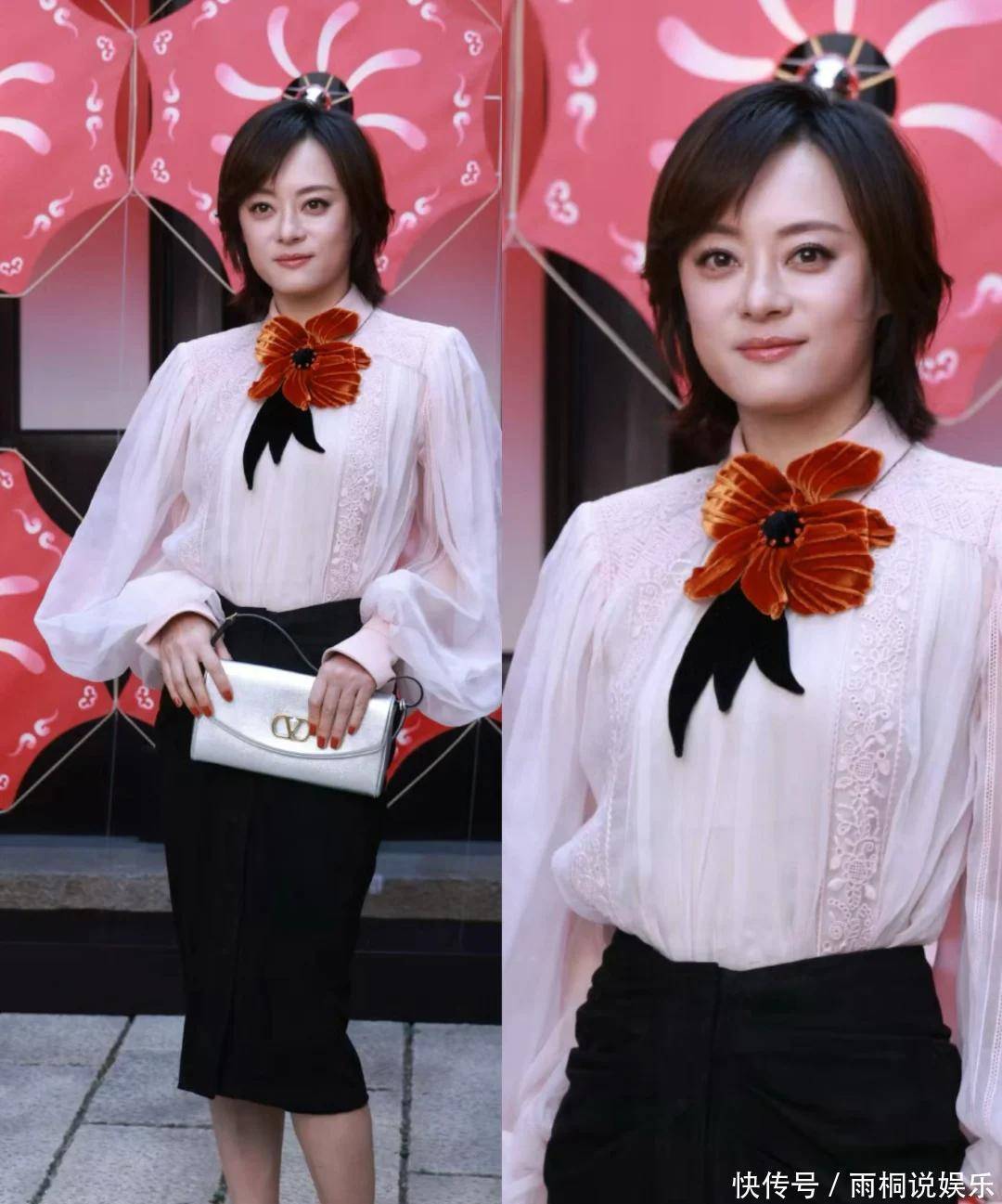 再说孙俪,作为华伦天奴的代言人,这次的造型真的让人有点看不懂。粉色泡泡纱袖上衣,搭配深色牛仔包臀裙,上衣上还别着大花,感觉一下子回到她演《辣妈正传》那个年代了。这造型放在现在,真的有点像八十年代的杀马特。